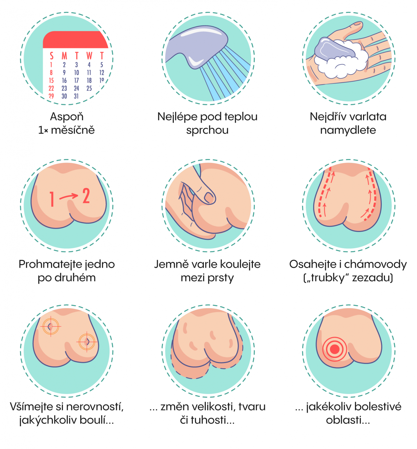 Pravidelné samovyšetření se dá spojit se sprchou či koupelí a zabere jen pár minut. Nezapomeňte o tom mluvit i doma. Pokud máte syna v pubertě, je vhodné mu vysvětlit, že samovyšetření je součástí běžné péče o zdraví.